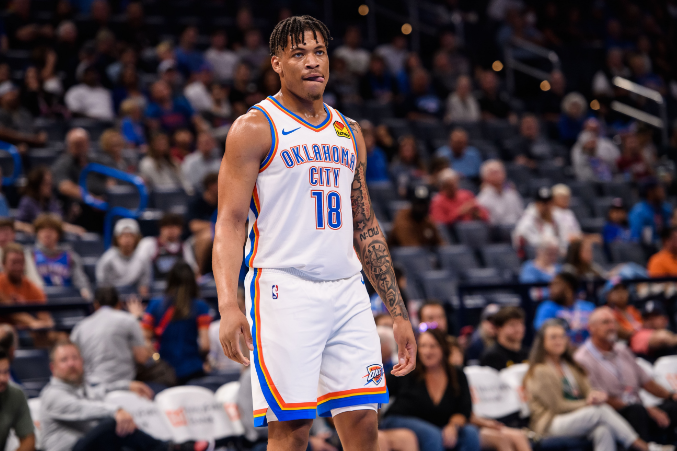 25岁的基昂泰-约翰逊身高195cm体重104kg,臂展达到211cm,2023年他在NBA选秀大会第50顺位被选中。基昂泰-约翰逊短暂效力雷霆9场比赛,场均7.4分钟得到1.2分1.1篮板。